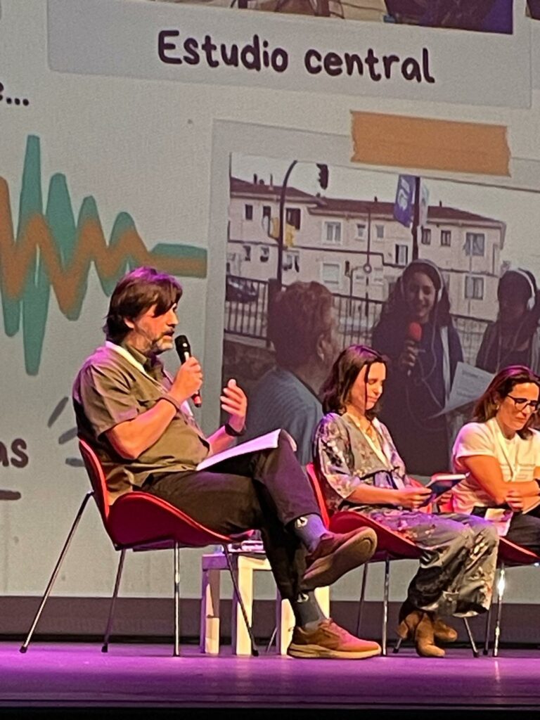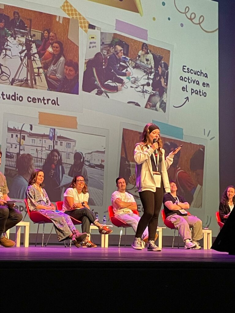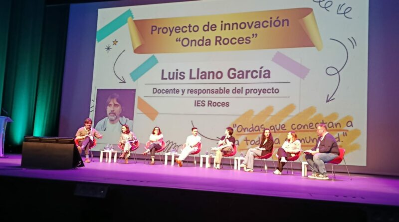 En la última mesa redonda se nos invitó a comentar nuestra propuesta, por la actividades que realizábamos desde Onda Roces. Luis Llano habló de todas las actividades que se hacen en el recreo del Roces y sus responsables: El taller Manga y Cultura japonesa, el taller musical, el Club de Lectura, los Patios deportivos, el taller de juegos de mesa y matemáticos, la Ecopatrulla, para terminar con las actividades que se hacen en Onda Roces con los podcast «al Altu la lleva» y la Jam poética. El acto terminó con la lectura por parte de la alumna de 4º ESO, Laura Martínez, escrito por ella misma que encandiló a todo el público presente.